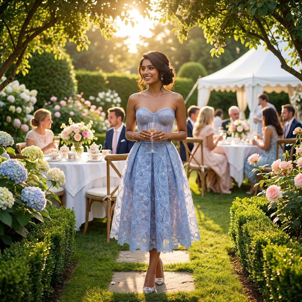 • Flared Midi Skirt – Provides graceful movement and a balanced silhouette